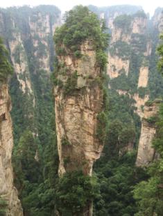 8日早上,我們乘坐“世界第一梯”——百龍?zhí)焯葜猎医绶屙敚@里是舉世聞名,奇特罕見的砂巖地貌。舉目遠(yuǎn)望,三千奇峰盡收眼底,怪石嶙峋,星羅棋布,雄險秀野,神態(tài)各異。峽谷深處,千百根石峰石柱奇?zhèn)ネ涣?。峻峭之石,如英武將帥;嵯峨之峰,似勇猛壯士。天氣陰沉,下起小雨,此時,峰谷內(nèi)云翻霧涌,數(shù)座山峰如中流砥柱巋然屹立于云霧之中,云海淼淼,如入蓬萊仙境,那里面一定住著神仙吧。