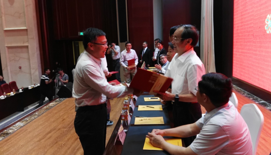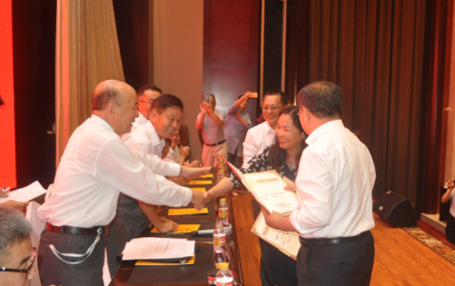 主席臺就坐領(lǐng)導(dǎo)為獲獎?wù)哳C獎(1)