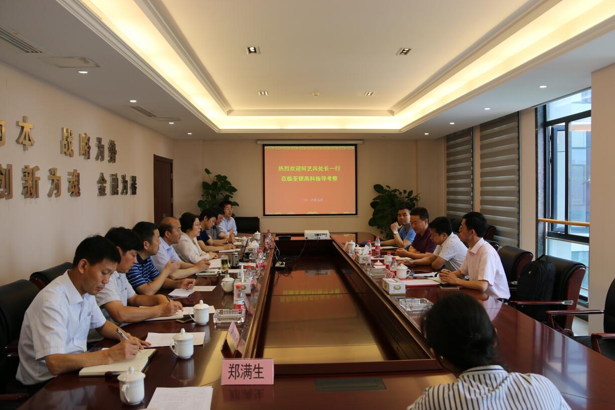 ??? 2018年5月29日,農(nóng)業(yè)農(nóng)村部科教司高新技術(shù)處處長何藝兵帶隊(duì),全國農(nóng)技推廣服務(wù)中心處長邱軍、中國農(nóng)業(yè)科學(xué)院科技局處長林克劍、科教司項(xiàng)目專員吳圣勇博士蒞臨荃銀高科調(diào)研指導(dǎo)。安徽省種子管理總站副站長汪社寬、主任科員朱國邦,安徽荃銀高科董事長張琴、副董事長陳金節(jié)、副總經(jīng)理張從合、朱全貴等參加調(diào)研座談會。