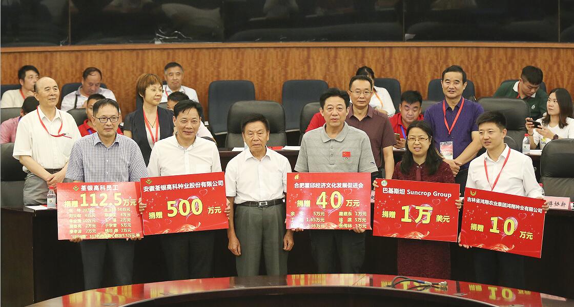 善人者,人亦敬之。張海銀種業(yè)基金會五年來的公益慈善活動得到社會各界愛心人士和愛心單位600余次的的慷慨捐贈,累計950多萬元。會上還進行了基金會2018年公益愛心捐贈儀式。荃銀高科母子公司高管和員工多次參與基金會濟困助學公益慈善活動,本次捐贈112.5萬元;吉林鴻翔種業(yè)集團鴻翔種業(yè)有限公司捐贈10萬元;巴基斯坦Suncrop Group(陽光作物集團)捐贈1萬美元;合肥霍邱經(jīng)濟文化發(fā)展促進會及會員為基金會貧困助學項目捐贈40萬元;安徽荃銀高科種業(yè)股份有限公司捐贈500萬元。基金會將按捐贈人捐贈的意愿和在業(yè)務范圍內(nèi)開展公益項目和慈善活動。