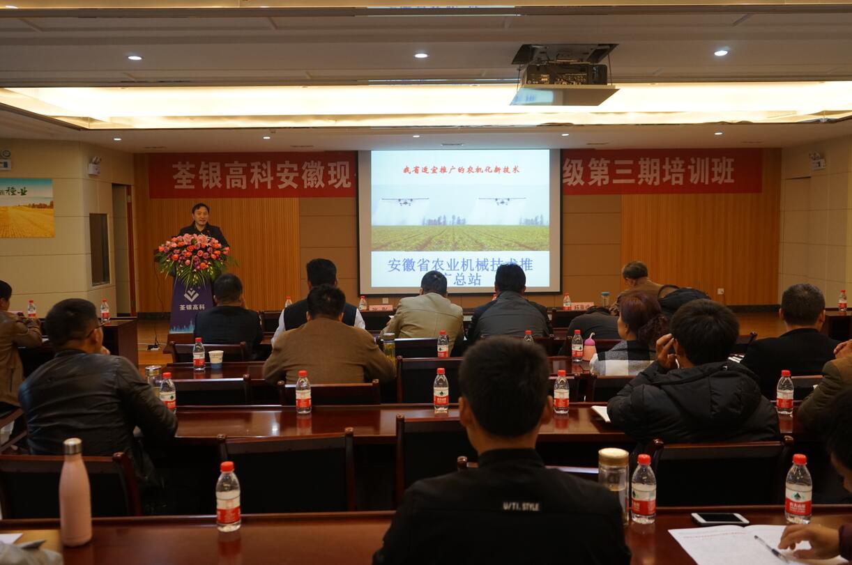 ??? 2018年12月3日,荃銀高科安徽現(xiàn)代農場主2017級培訓班第三期培訓開班儀式在公司六樓多功能廳舉行。安徽荃銀高科董事長張琴、營銷總監(jiān)王玉林,培訓班總教務長楊惠成老師,安徽張海銀種業(yè)基金會秘書長張彤,及來自全省各地100多位從事農業(yè)種植的青年農場主學員參加了本次培訓。