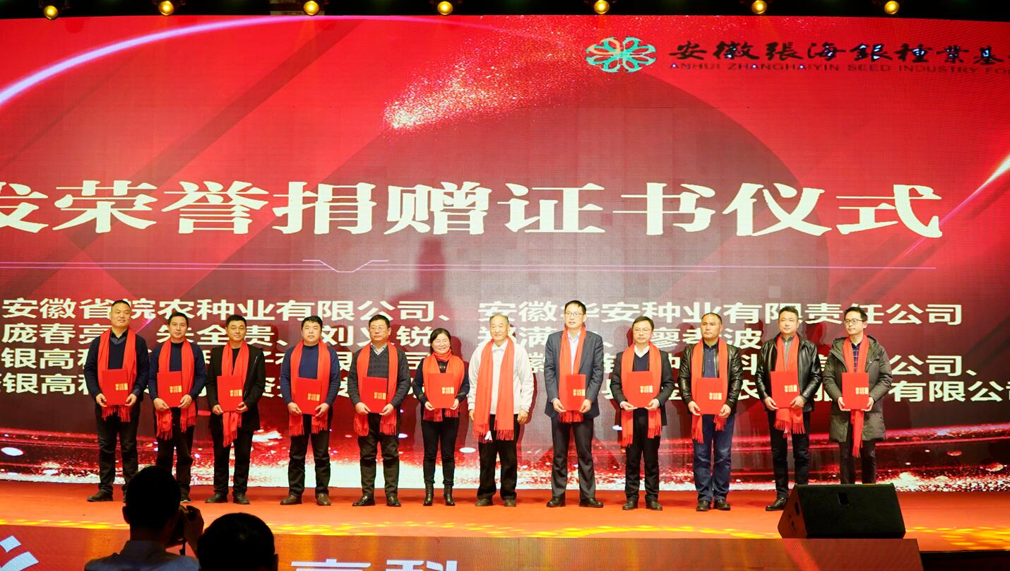 ?? “踐行公益,奉獻(xiàn)愛(ài)心”。會(huì)上,進(jìn)行了安徽張海銀種業(yè)基金會(huì)頒發(fā)捐贈(zèng)證書(shū)儀式,眾人拾柴火焰高,希望更多的人關(guān)注慈善公益事業(yè),為公益多盡一份力。