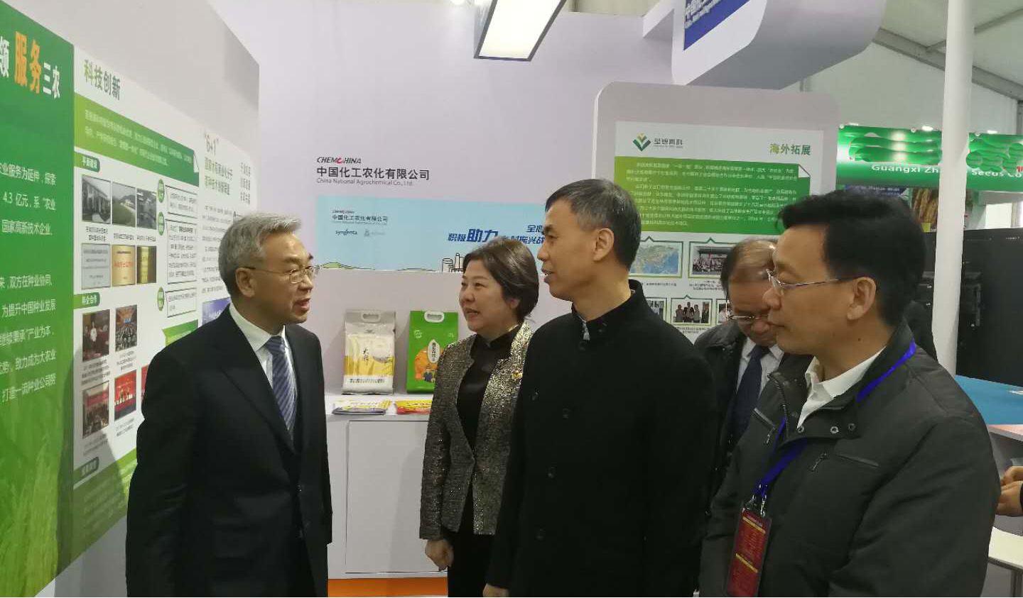 ??? 中化農(nóng)業(yè)總裁、荃銀高科董事長(zhǎng)覃衡德先生,“中國(guó)種業(yè)十大功勛人物”、公司創(chuàng)始人張海銀先生等領(lǐng)導(dǎo)、專家蒞臨荃銀高科展廳巡展。