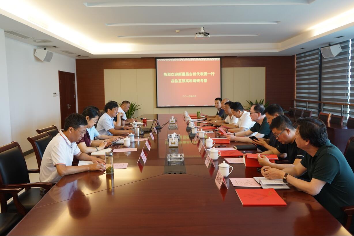 ??? 2019年6月15日,由新疆昌吉州人民政府副秘書長(zhǎng)鄭新健帶隊(duì),昌吉國(guó)家農(nóng)業(yè)科技園區(qū)管委會(huì)副主任安虎、農(nóng)業(yè)局農(nóng)業(yè)執(zhí)法支隊(duì)支隊(duì)長(zhǎng)何成武、農(nóng)牧機(jī)械化技術(shù)推廣站站長(zhǎng)吳耿明、昌吉州企業(yè)代表等一行蒞臨荃銀高科調(diào)研考察。荃銀高科副總經(jīng)理兼首席技術(shù)官?gòu)垙暮?、副總?jīng)理朱全貴等熱情接待了昌吉州代表團(tuán)一行,并召開(kāi)調(diào)研座談會(huì),雙方就種業(yè)發(fā)展展開(kāi)座談交流。