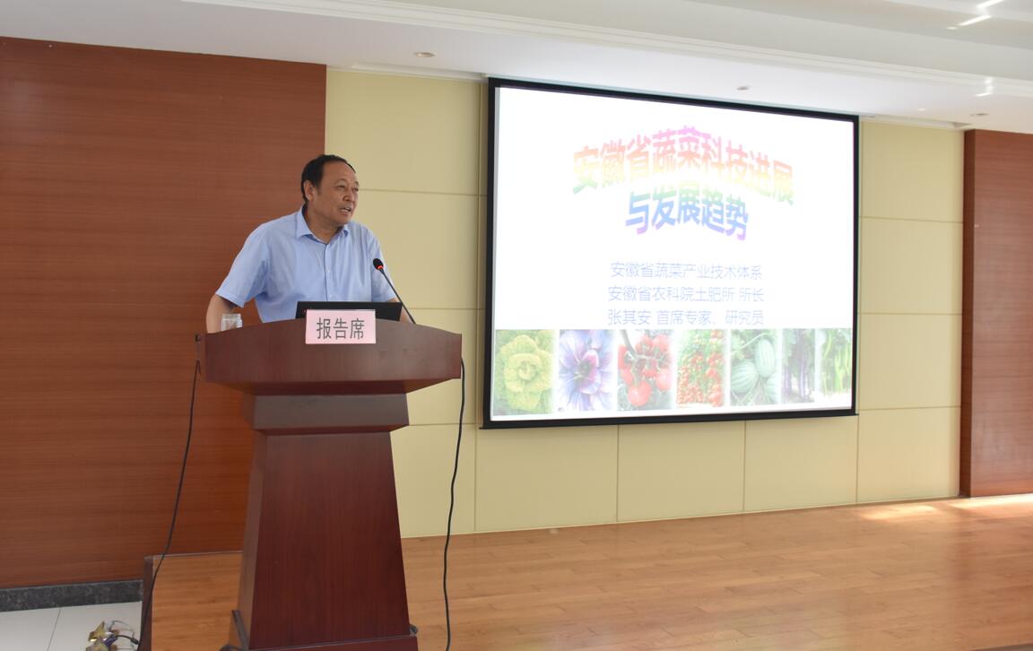 ??? 張其安研究員在會上作《安徽省蔬菜科技成就與發(fā)展趨勢的報告》,詳細講解了蔬菜育種關鍵技術重要進展及未來發(fā)展方向,聯(lián)盟成員就相關研究方向進行了現(xiàn)場問答與討論。