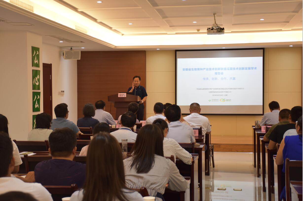 ??? 24日下午,安徽省生物育種產(chǎn)業(yè)技術創(chuàng)新戰(zhàn)略聯(lián)盟瓜菜技術創(chuàng)新發(fā)展學術報告會召開,合肥市科技局農(nóng)村與社會發(fā)展科技處處長方建東,安徽省蔬菜產(chǎn)業(yè)技術體系首席專家、國家西甜瓜產(chǎn)業(yè)技術體系合肥綜合試驗站站長張其安研究員,豐樂種業(yè)、徽大農(nóng)業(yè)等安徽省生物育種產(chǎn)業(yè)技術創(chuàng)新戰(zhàn)略聯(lián)盟成員及員工70余人參加了報告會。