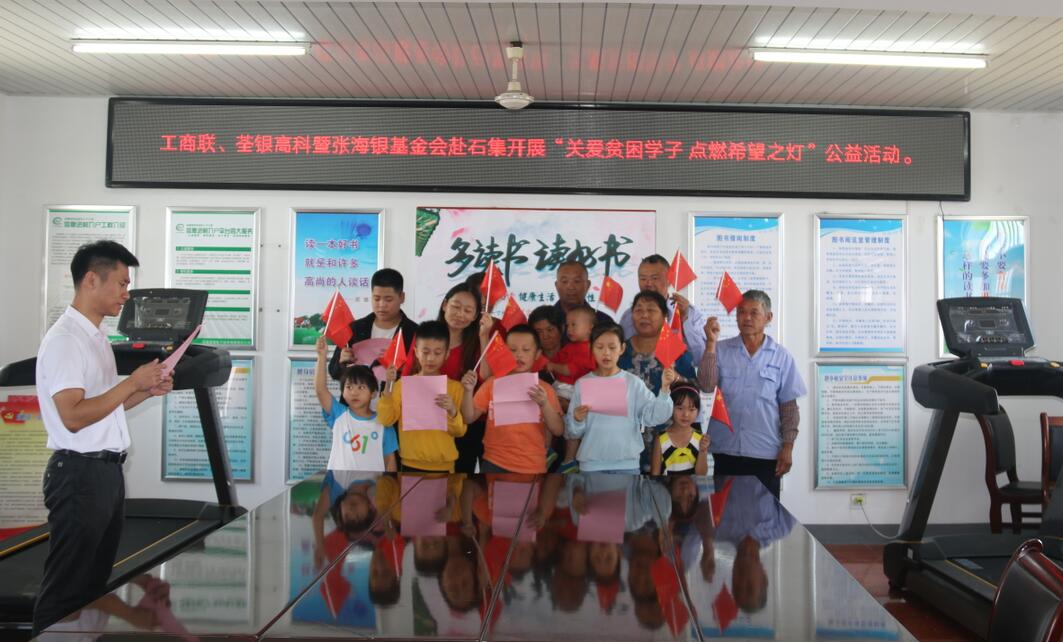 ??? 2019年9月26日,為積極響應(yīng)和認(rèn)真落實合肥市工商聯(lián)、總商會關(guān)于合肥市民營企業(yè)“百企幫百村”精準(zhǔn)扶貧行動實施方案精神,荃銀高科攜手安徽張海銀種業(yè)基金會赴長豐縣陶樓鎮(zhèn)石集社區(qū)開展“關(guān)愛貧困學(xué)子,點燃希望之燈”公益活動。合肥市工商聯(lián)副主席沈鑫、經(jīng)濟(jì)處主任科員陳焱垚,安徽張海銀基金會秘書長張彤,荃銀高科工會主席、辦公室主任鄭滿生,荃銀瓜菜公司副總經(jīng)理陳孝奇,陶樓鎮(zhèn)石集社區(qū)書記靳進(jìn)等村委工作人員參加活動,并進(jìn)行座談交流會。