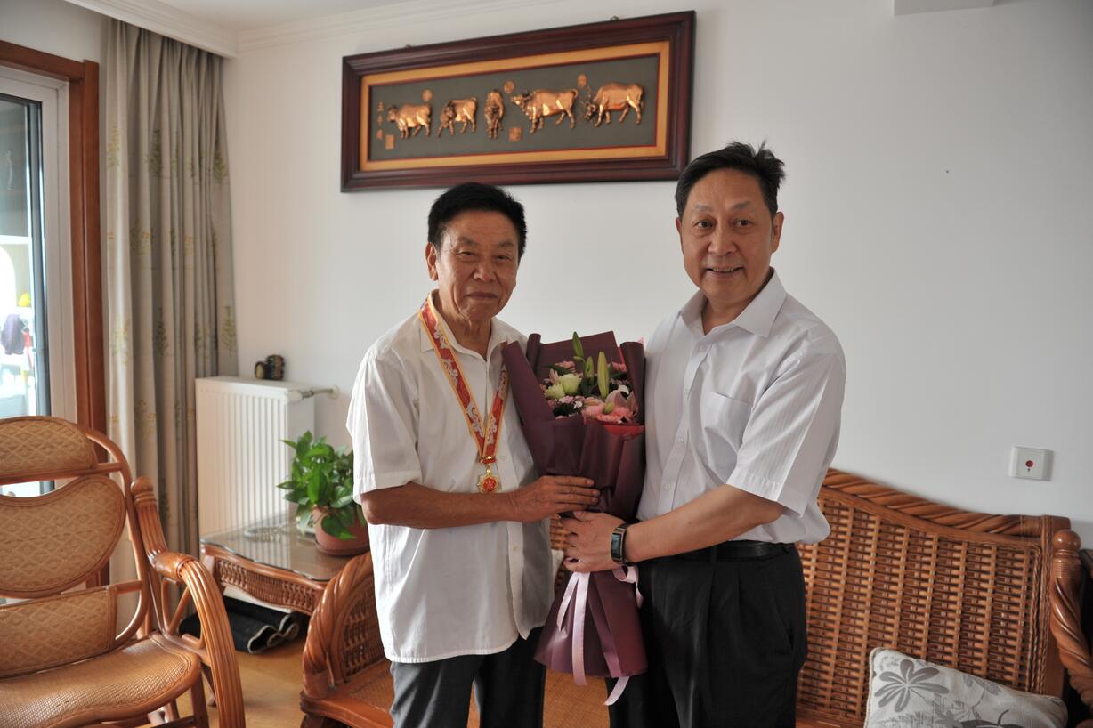 ??? 近日,中共中央、國務(wù)院、中央軍委聯(lián)合向全國頒發(fā)“慶祝中華人民共和國成立70周年”紀(jì)念章活動(dòng),以慶祝中國人民共和國成立70周年。9月25日,安徽省科學(xué)技術(shù)獎(jiǎng)勵(lì)工作辦公室劉瑞奇主任一行代表安徽省人民政府,將“慶祝中華人民共和國成立70周年”紀(jì)念章頒發(fā)給“中國種業(yè)十大功勛人物”、安徽荃銀高科種業(yè)股份有限公司創(chuàng)始人、安徽張海銀種業(yè)基金會(huì)理事長張海銀先生,并送上鮮花,轉(zhuǎn)達(dá)了黨和政府的親切慰問與關(guān)懷。