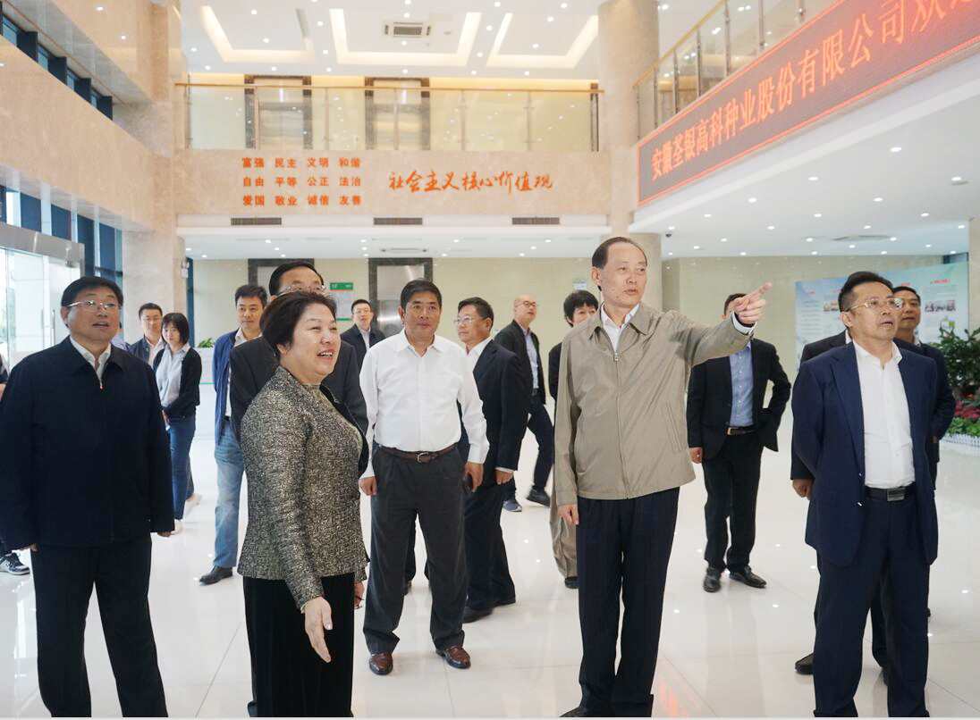 ??? 2019年10月11日下午,農(nóng)業(yè)農(nóng)村部黨組副書記、副部長余欣榮蒞臨荃銀高科考察調(diào)研,農(nóng)業(yè)農(nóng)村部鄉(xiāng)村產(chǎn)業(yè)發(fā)展司司長曾衍德、辦公廳副主任寧啟文參加調(diào)研。安徽省政府副秘書長張冬云,省農(nóng)業(yè)農(nóng)村廳黨組成員、副廳長王華,合肥市副市長王民生等領導陪同考察。荃銀高科副董事長、總經(jīng)理張琴,常務副總經(jīng)理王玉林,副總經(jīng)理、首席技術(shù)官張從合,副總經(jīng)理朱全貴、江三橋等熱情接待了余欣榮副部長一行。